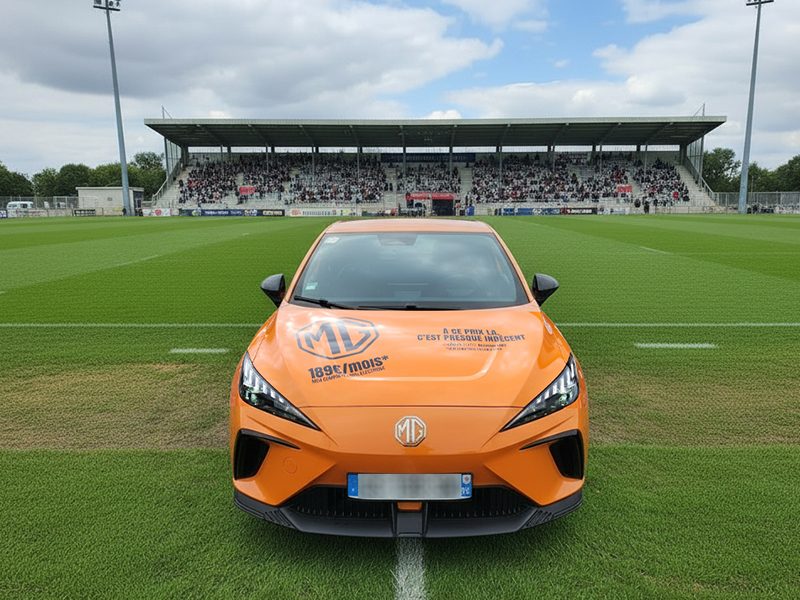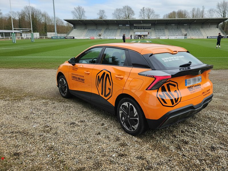 Pour ce match de rugby féminin, l’agence a rhabillé une MG4 électrique aux couleurs de l’audace. Un covering pensé pour faire sourire, interpeller… et marquer des points. Lettrages adhésifs à messages humoristiques, un brin provoc, pour l’exposition de la MG4 de la concession EDEN AUTO de Lons. Parce que la transition électrique peut aussi se jouer avec du caractère. Quand le covering devient un vrai levier de communication.
